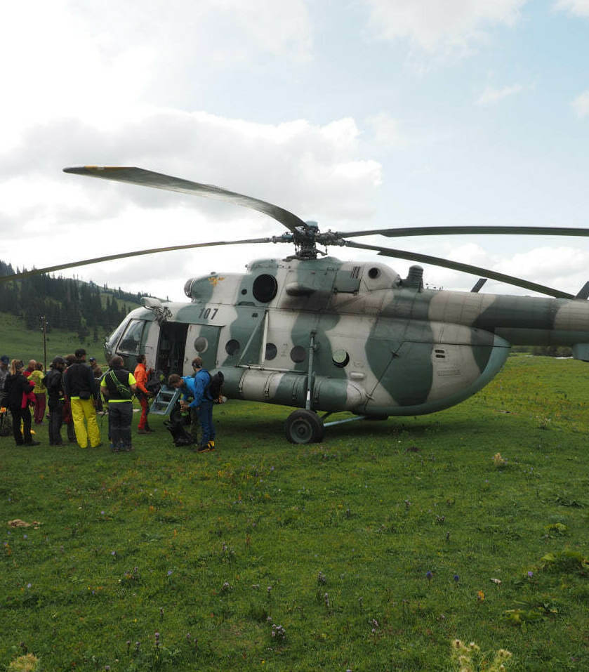 - вертолётный перелёт на ледник и обратно (перевоз груза до 20 кг)
