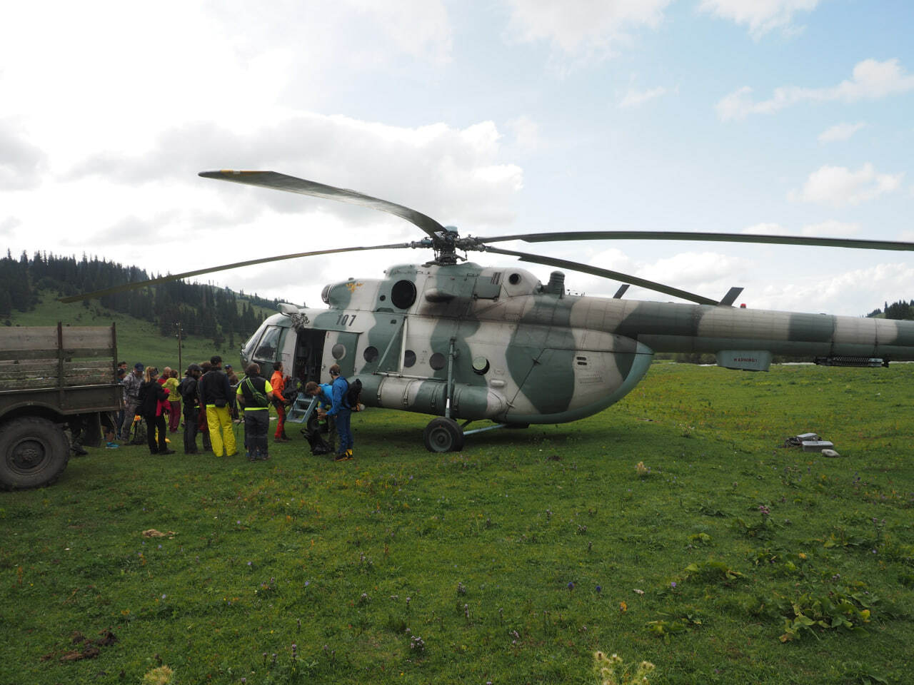 - вертолётный перелёт на ледник и обратно (перевоз груза до 20 кг)